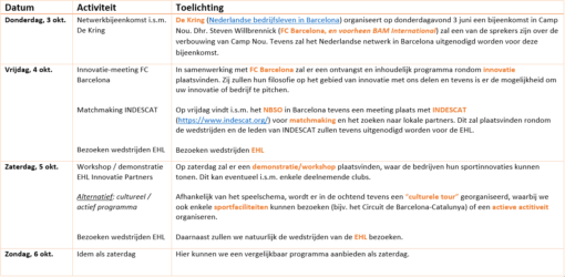Zakelijk programma EHL Barcelona, 3 – 6 oktober 2019
